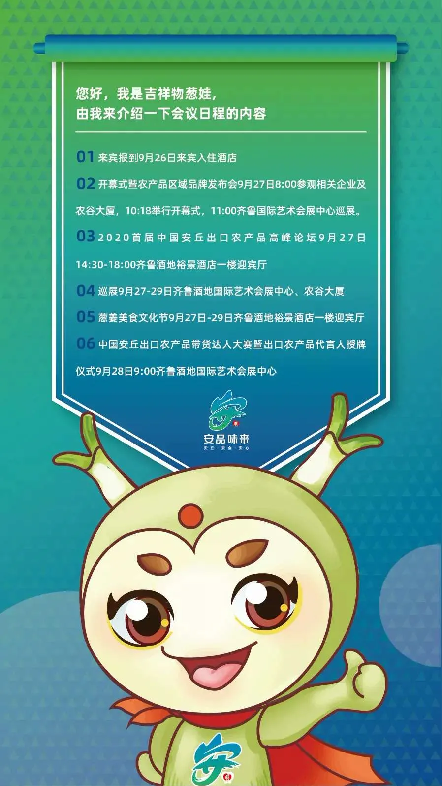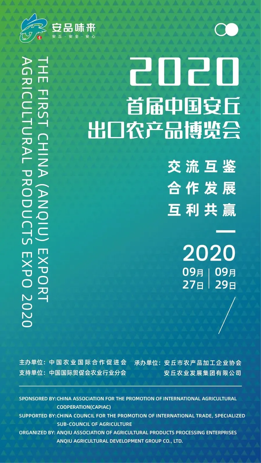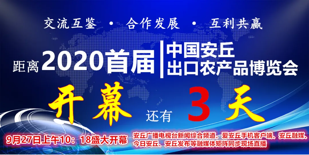 据悉,2020首届中国安丘出口农产品博览会将于9月27日上午10:18盛大开幕,届时“安丘广播电视台新闻综合频道、爱安丘手机客户端 、安丘融媒、今日安丘 、安丘发布”等融媒体矩阵将同步现场直播。博览会期间除举办开幕式暨农产品区域品牌发布会外,还将举办2020首届中国安丘出口农产品高峰论坛、姜葱美食文化节、中国安丘出口农产品带货达人大赛暨出口农产品代言人授牌仪式等系列活动。届时国家和省农业部门相关领导,国家院士、国内农产品质量安全领域专家、现代农业发展方面专家、出口农产品加工企业负责人等将齐聚安丘,围绕出口农产品质量安全、“双循环”背景下国际国内市场交流、现代农业产业转型发展进行探讨交流。