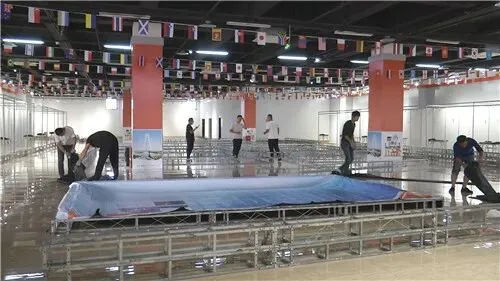 为打造出口农产品信息交流、市场对接、品牌推广的服务平台,9月27日至29日,2020首届中国安丘出口农产品博览会将在安丘齐鲁酒地国际艺术会展中心、农谷大厦开幕。在博览会即将拉开帷幕之际,9月23日,记者来到安丘齐鲁酒地国际艺术会展中心进行探班。在展会布展现场,记者看见工人们正忙着搭建展架和展台,博览会各项工作正按照进度安排有条不紊地筹备中,现场呈现一片忙碌而紧张有序的景象。据安丘市农业农村局副局长王顺明介绍,该展馆共设计室内展位94个,其中,特装展位31个、标准展位63个;室外展位35个。目前,共确定136家企业参加布展,其中室内参展企业101家,室外参展企业35家,各参展企业于9月23日开始进驻会展中心,全面开展布展工作,9月24日前,全面完成展区布展工作。