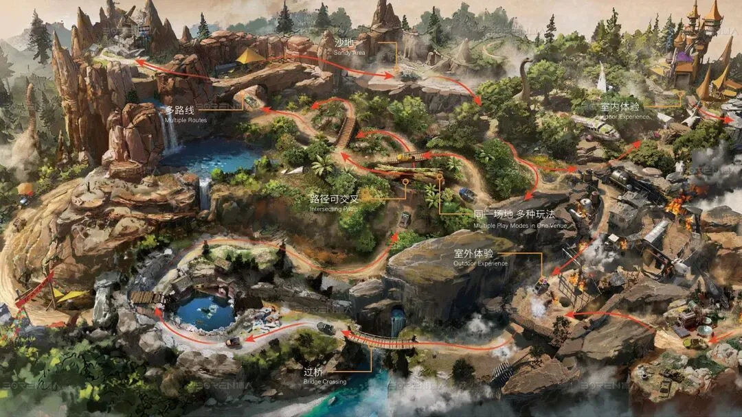 该项目可无缝衔接室内外空间,适配坑洼、沙地、台阶等复杂地形,搭配五感沉浸系统与多路线设计,玩法丰富且沉浸感拉满;