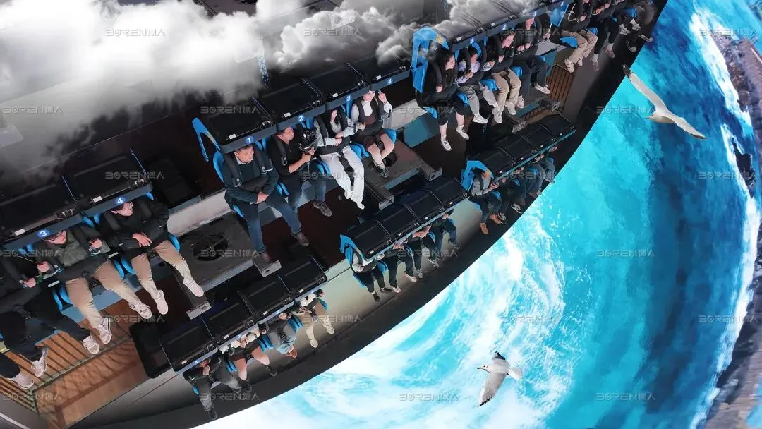 机械臂飞行影院,对建筑空间要求更低、复合动作更流畅。搭配呈现都市与山河的球形 IMAX 巨幕,辅以震撼音效与主题气味微风,实现全视野画面包裹。