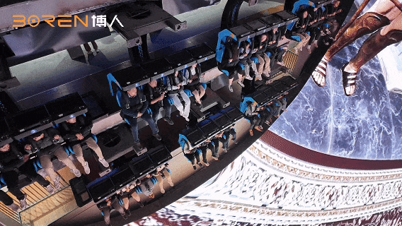 作为博人全球首创的悬挂式机械臂飞行座舱,带来全新互动体验,标杆案例包括保定中国古动物馆《飞跃燕赵 10 亿年》、济南鹊华中新园《飞行奇观・时空宝藏》。