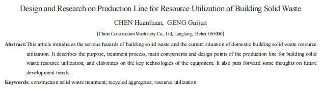 由于矿山机械在国内发展已经非常成熟,所以就单项技术而言,破碎技术、输送技术和筛分技术都已相对完善,但在工厂化的建筑固废资源化利用方面的应用还较少,经验还不足。 如何利用实际的项目条件,把现有的技术与分拣技术、绿色环保技术等进行有机地集成和技术融合,在满足需求的同时,将设备产能发挥到最大,降低生产线的投资,实现绿色低碳的目标,是该项技术研究的核心内容。