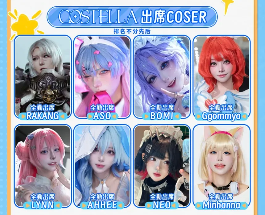 本次展会重磅联动韩国COSTELLA公司,特邀8位韩国顶级人气Coser跨海空降上海!