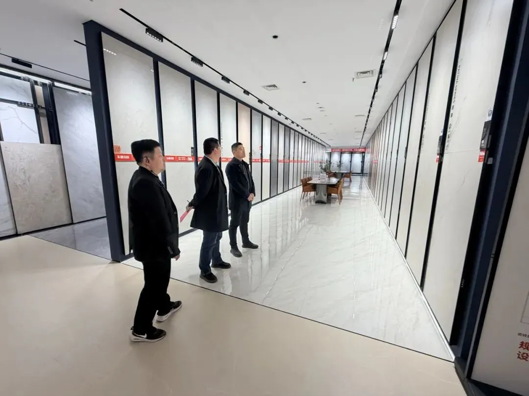 在东鹏瓷砖门店负责人吴总的全程陪同下,调研组实地察看了总面积近1300平方米的品牌展厅及“瓷砖+整装”一体化空间搭配展示区。在核心产品展示区,调研组重点调研了东鹏瓷砖在新型绿色建材领域的技术创新成果。据吴总介绍,东鹏瓷砖紧扣市场对健康环保、功能升级的消费趋势,重点布局岩板、抗菌砖、生态石三大新型材料赛道:岩板产品兼具大尺寸、高硬度、易加工特性,可覆盖墙地一体化、家具定制化多场景应用;抗菌砖搭载高效抑菌技术,可有效抑制常见致病菌滋生,为居家健康筑牢防护屏障;生态石以工业固废为核心原料,采用免烧工艺生产,兼具A1级防火、R11级防滑性能,综合能耗仅为国际标准的25.6%,实现环保属性与实用性能的双向赋能。调研组对东鹏瓷砖以技术创新驱动绿色建材发展的实践路径给予高度评价,认为相关经验为全行业绿色转型提供了可复制、可推广的现实范本。