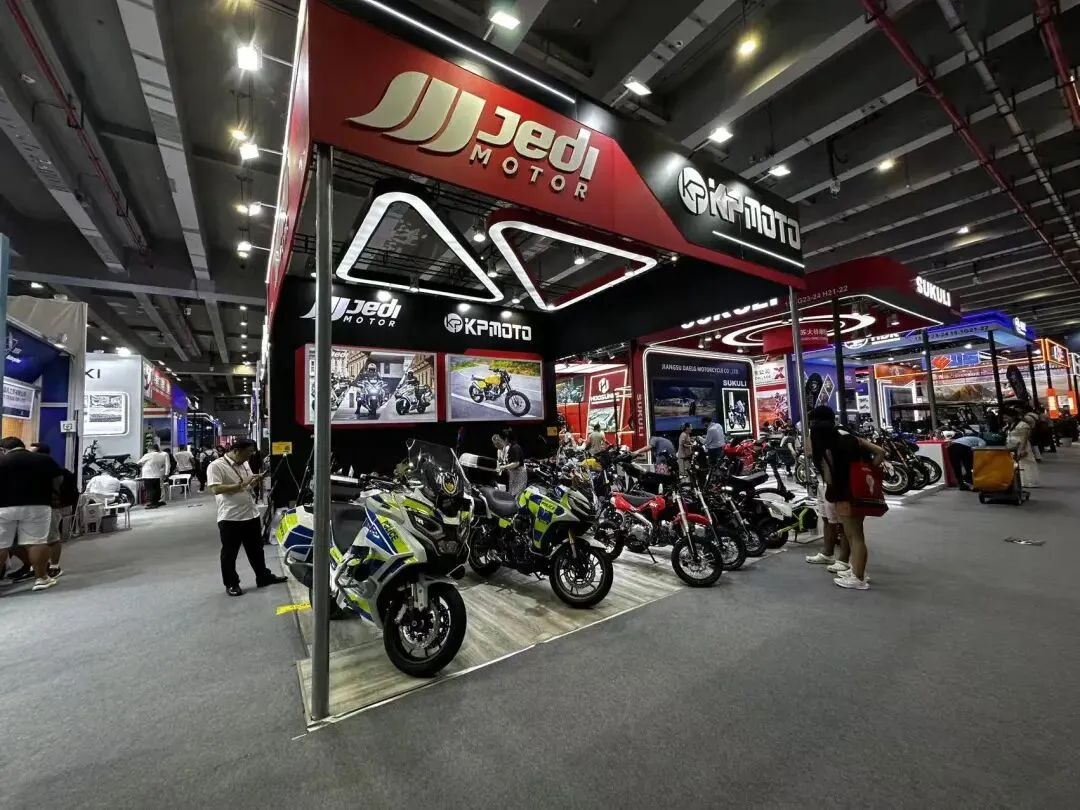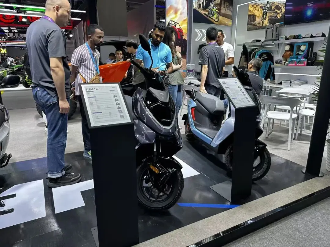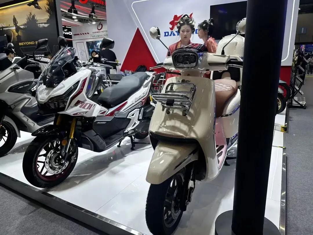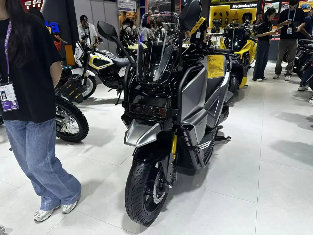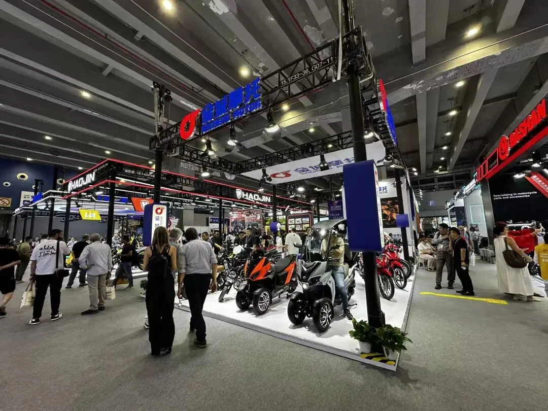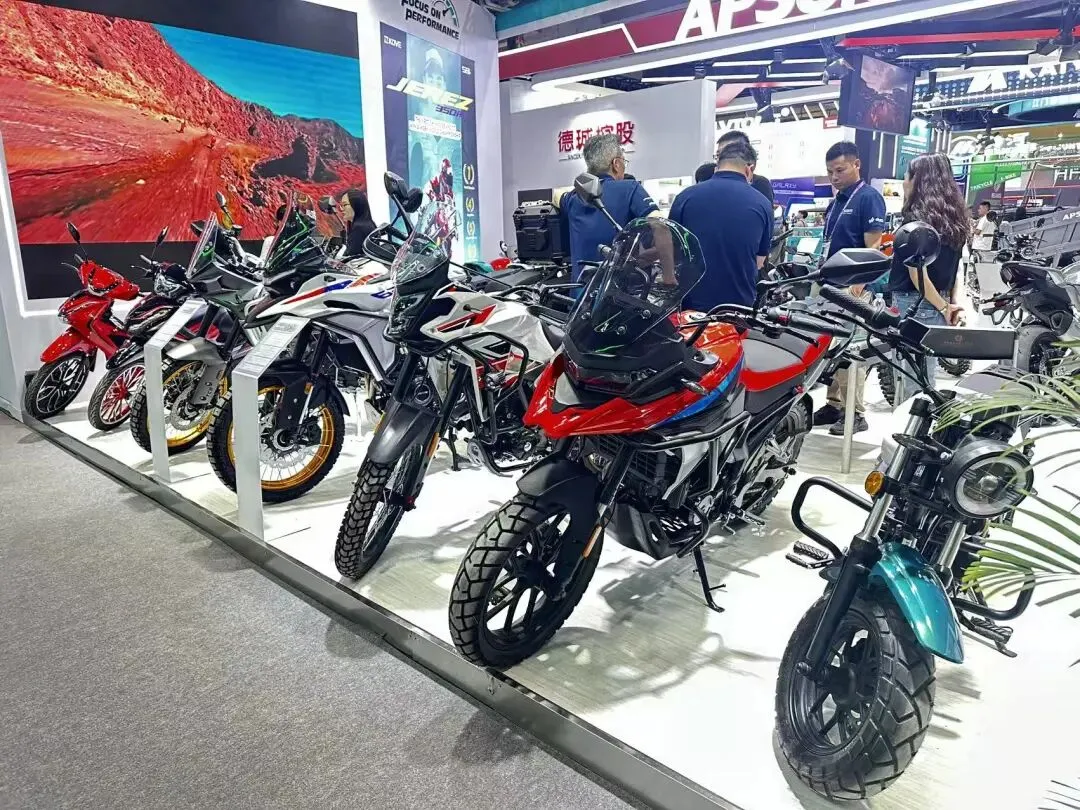 广东企业豪进摩托,此次携豪进、猎变两大品牌出口车型参展,聚焦东南亚、中东等核心海外市场,重点展出适配当地路况的实用型踏板车小肥鹅、闪电狗、机甲蜂、跨界踏板NOMAD 350,跨骑车蜻蜓队长与ADV 250等车型,兼顾燃油经济性与耐用性,凭借高性价比收获大量意向订单,现场与多个中东、东南亚采购商达成初步合作共识,进一步巩固了其在海外中端代步市场的地位。