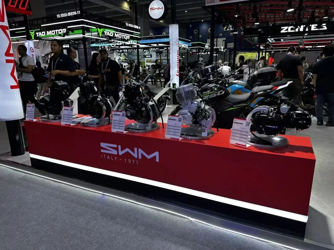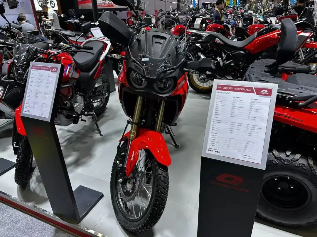 钱江摩托(QJMOTOR)此次展示多款中排量车型参展,现场展出适配海外玩乐市场的ADV、仿赛、街车车型,兼顾性能与性价比,包括此前在亮相的SRT500RX、追921、SRT300DX、SRK250R1、SRK250SA等车型。