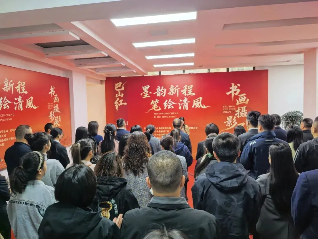 今日,由巴中市金融团工委主办、中国建设银行股份有限公司巴中分行承办的“巴山红·墨韵新程 笔绘清风”书画摄影展在巴中市美术馆开幕。70余位银行与艺术界同仁出席开幕式。