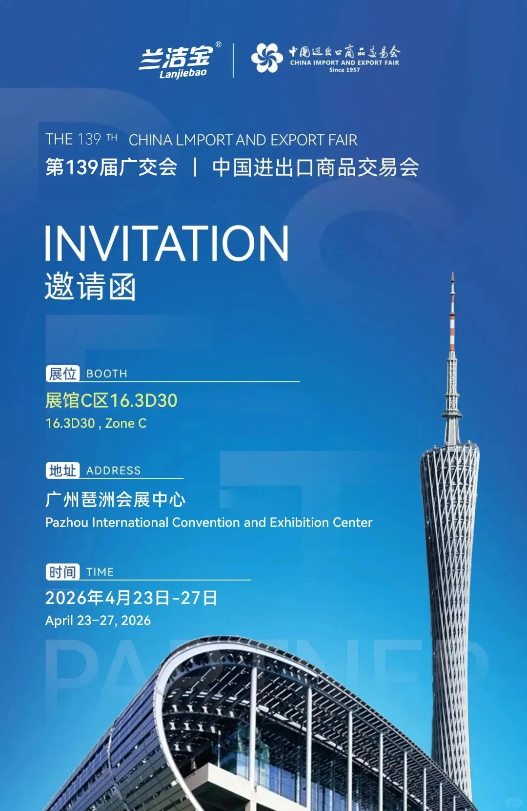 ? 兰洁宝展位:C 区 16.3D30