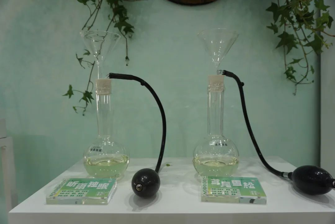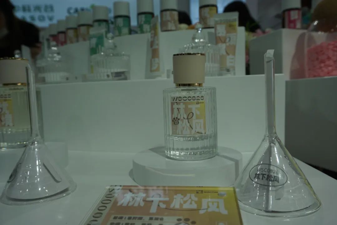 铭康对面就是芬豪展台。芬豪展出的下游产品多为洗护类,如洗发水、沐浴露、洗衣液等。该公司还与下游香水品牌“寻香之旅”合作展出了部分香水和家用香氛,其中一款无火香薰的气味自然而小众,深得小编喜爱。