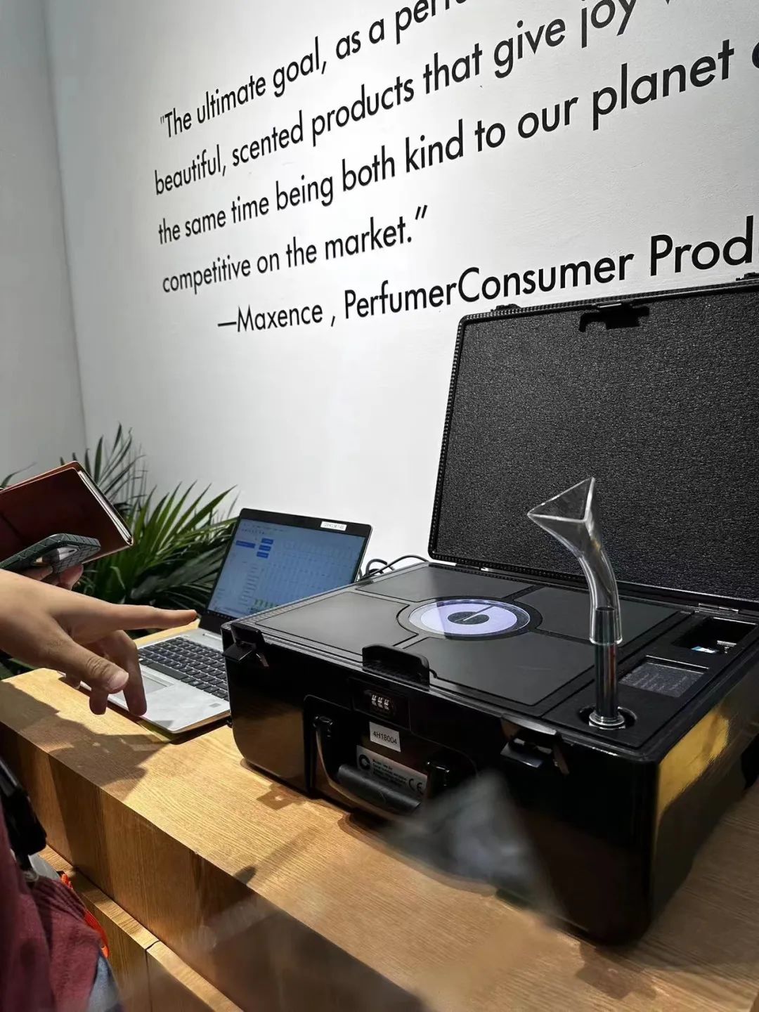 奇华顿本次展出亮点有二,一是一个香氛影片装置,也就是一边观看影片,一边有与画面对应的香氛从脖挂式装置中喷出。只可惜小编是展会最后一日前往,这套装置因电量耗尽已不能体验。二是一套协助调香师工作的设备,依然很可惜,最后一日已不再展出。(血泪教训:不要最后一天才去观展。)
