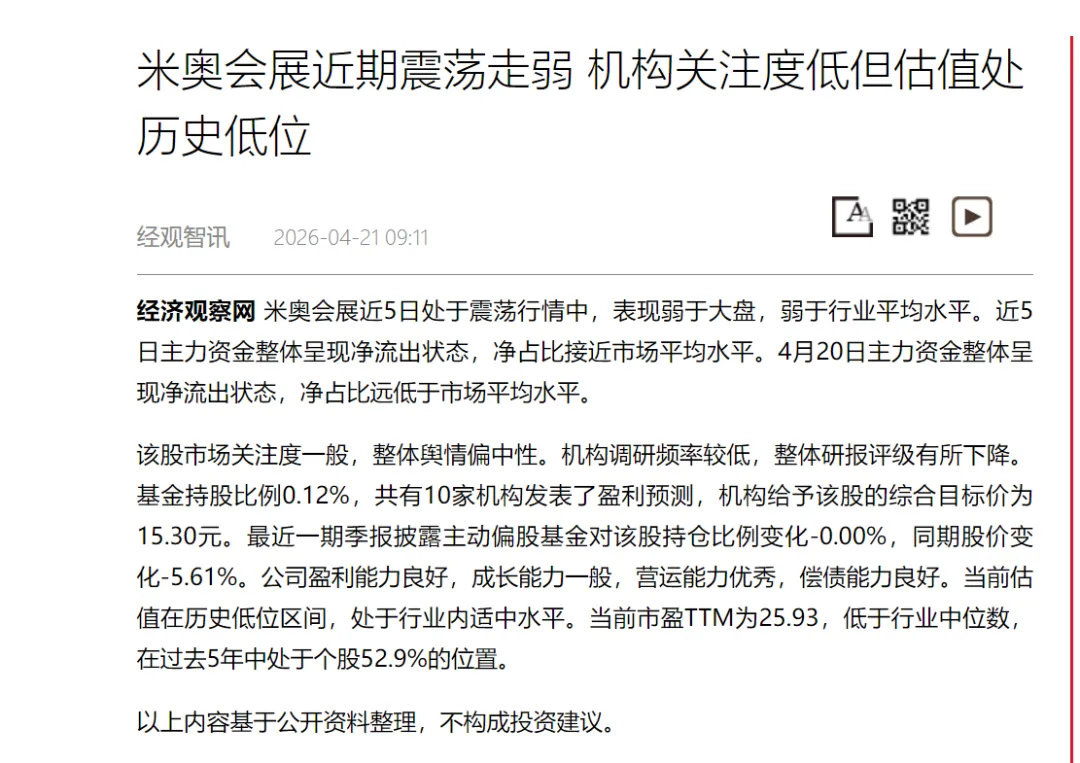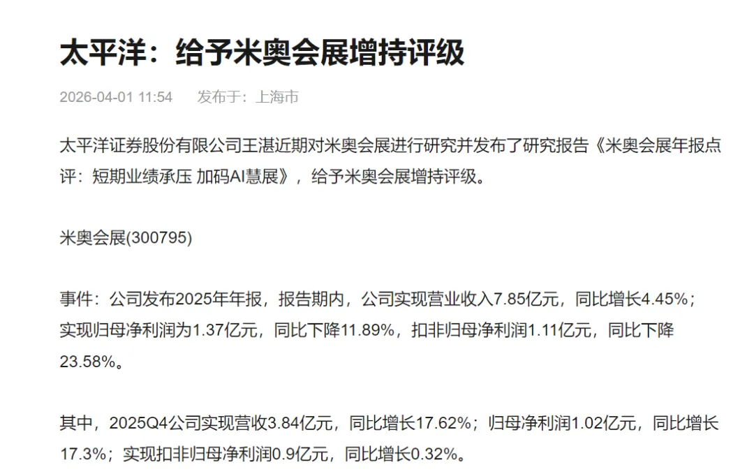 之前还有个太平洋证券、叫做王湛的家伙公开给米奥评级,竟然给出“增持评级 ”,我就说这家伙根本就不了解会展。做的什么烂研究报告《米奥会展年报点评:短期业绩承压 加码AI慧展》简直就是胡说八道。报告做得再像模像样,你有我们业内人士懂这家企业吗?你有我们业内人士懂会展???按我说,现在这个阶段,我只能给出比较保守的评级。因为我根本就没看出他有什么核心竞争力和想象空间。(责任编辑:小喇叭)