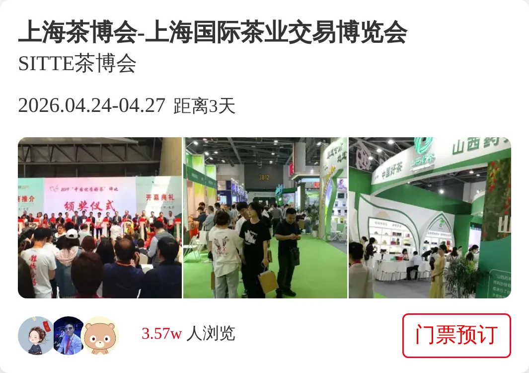 东方茶路· 海派风情!第29届上海国际茶业交易博览会即将启幕!门票观众预登记火热进行中~