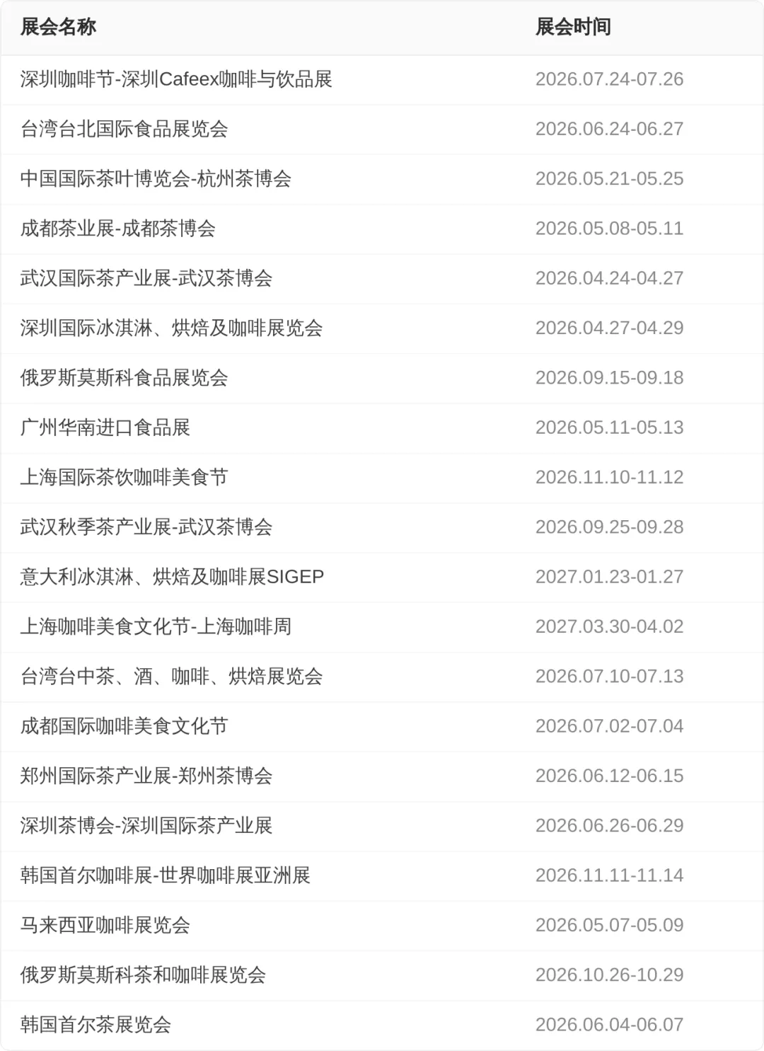 【茶叶咖啡展会排期】