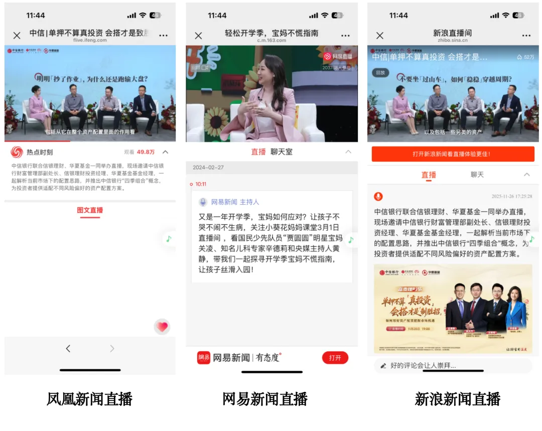 4、网易新闻/搜狐新闻/百度新闻直播平台:三大主流门户直播渠道,日活均过亿,SEO权重极高,用户搜索相关关键词即可快速找到直播内容,长尾流量惊人,覆盖各类年龄段、消费层级受众,适合各类展会、活动的全域曝光,无需额外投入推广,就能实现自然引流,助力活动触达更多潜在客户。