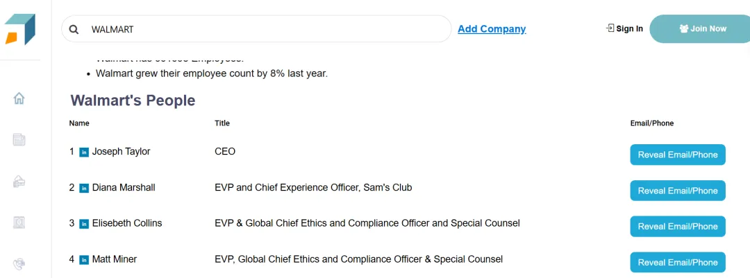会出现公司规模信息,相关人员信息,以及他们的竞对公司列表: