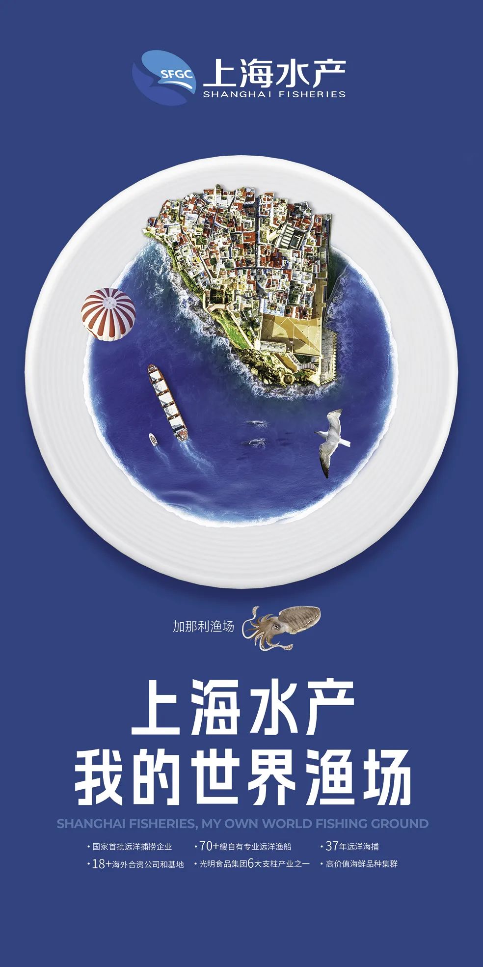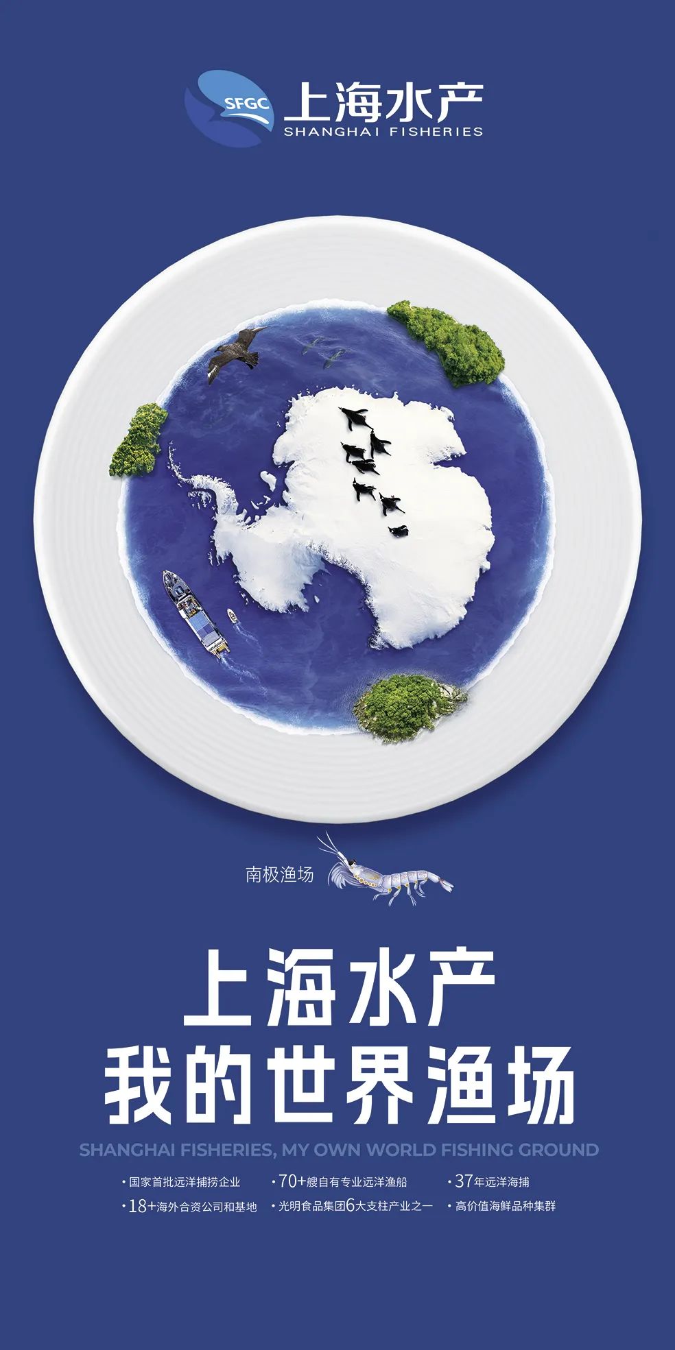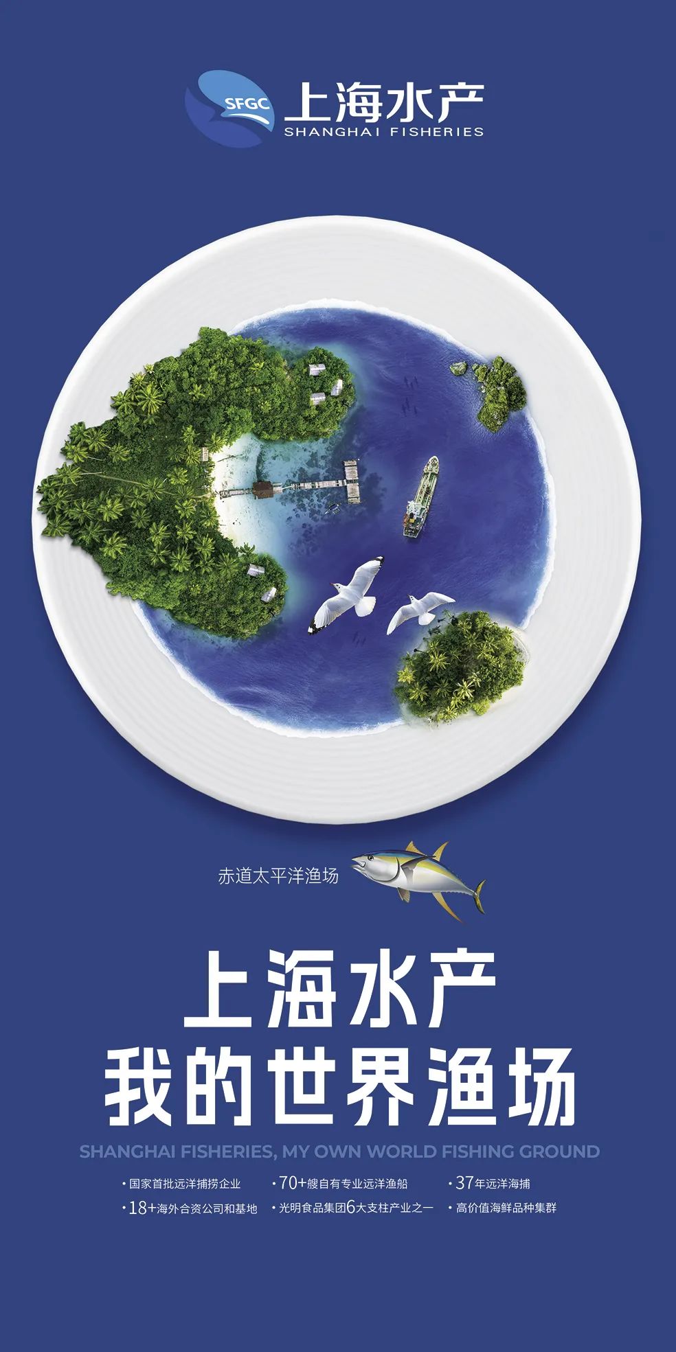 通过“上海水产,我的世界渔场”亲和力的表达方式,强关联公司名称,展现出广阔的海洋场景感,产生高价值产品的想象;同时让人有捕捞场景的联想,以体现企业天然、自然、丰富水产资源的特色。来自“世界渔场”的产品代表了“上海水产”作为全球海洋食品集成分销平台的地位。