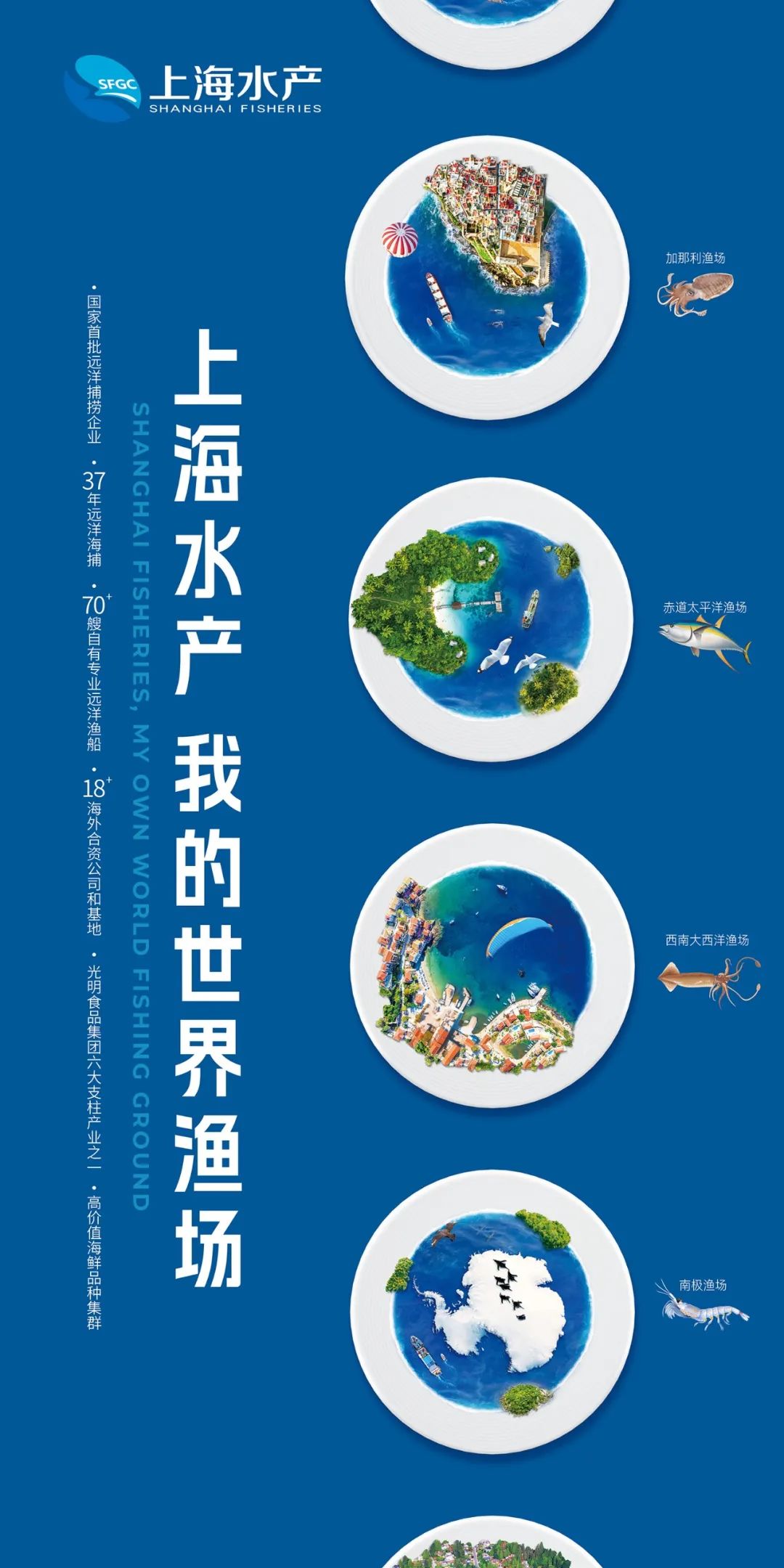 最新主KV“上海水产,我的世界渔场”是初次在渔博会上露出,以波澜壮阔的海洋景图展现“上海水产”获取纯天然、丰富水产资源、深耕“蓝色粮仓”的企业特色,科普“合理开发海洋资源,提升渔业资源养护能力”之理念。