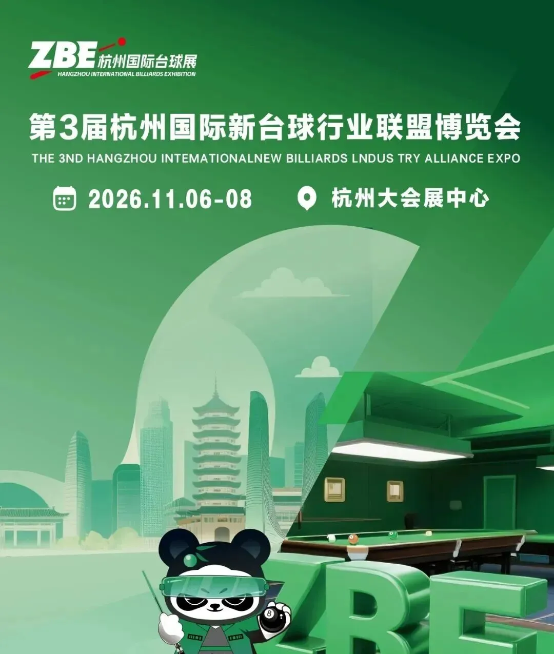 展会推荐丨11月6日-8日2026第3届杭州国际台球行业联盟博览会(ZBE 杭州国际台球展)