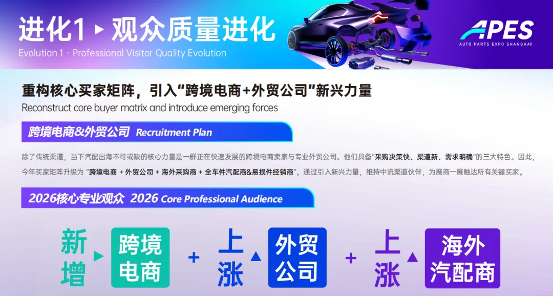 ✅ 精准客群,高效对接:重点邀约跨境电商(SHEIN、亚马逊、TikTok等)、外贸公司、全球汽配城买家三大核心采购群体,现场设置跨境采购对接会,助力企业精准获客。