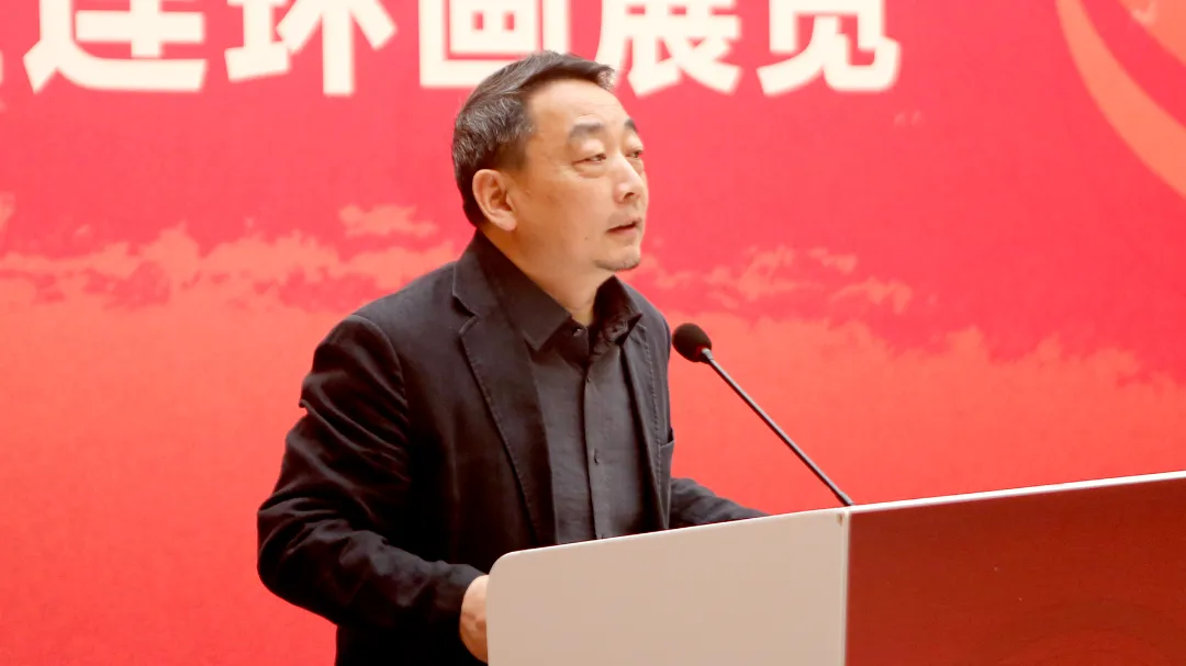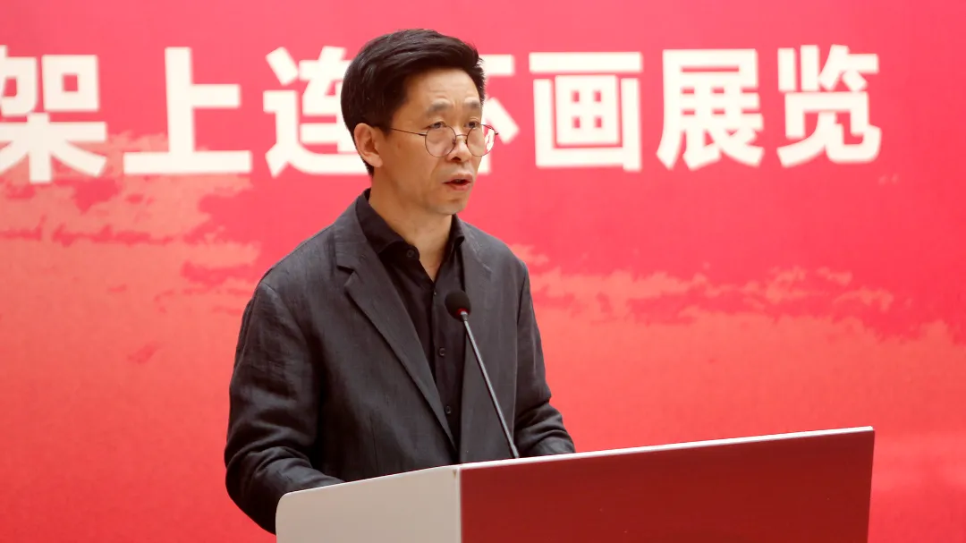 中国美术家协会连环画艺委会主任李晨在致辞中回顾了架上连环画展自2010年创办至今的16年历程,以架上展览的形式延续这一传统艺术事业。他表示,当前连环画艺术正迎来复苏,不仅传统经典作品受到关注,架上连环画展览主题始终紧扣国家大政方针,先后推出“中国故事”“新征程新篇章”“脱贫攻坚”“同心筑梦民族团结”等系列主题,累计巡展达60余场,让更多大众有机会接触连环画原作,了解这一艺术形式的魅力。