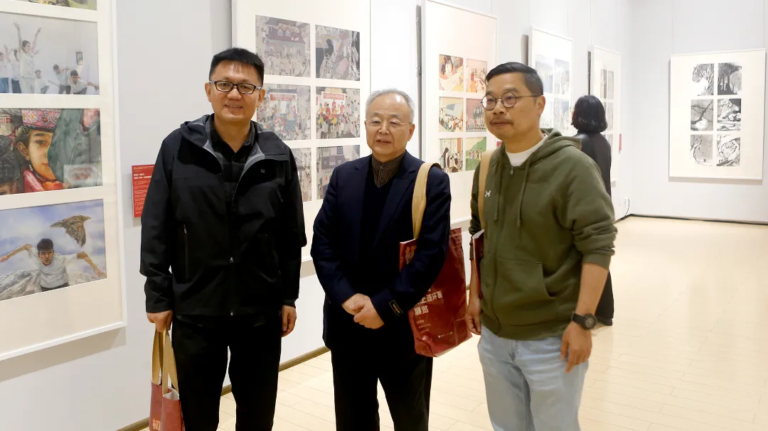中国美协连环画艺委会副主任 何玉麟(左);湖北省美术家协会主席 李乃蔚(中);湖北美术学院绘画学院院长 徐文涛(右)