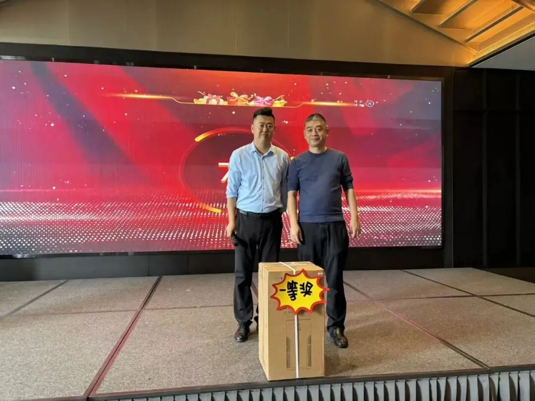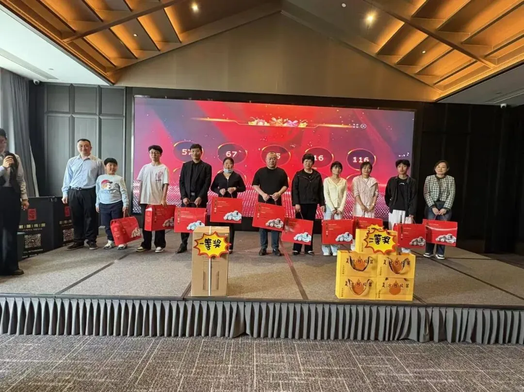随后的午宴与抽奖环节,将现场氛围推向新高潮。全体嘉宾欢聚一堂、共叙情谊,在享用美味佳肴的同时,惊喜抽奖环节轮番开启,丰厚礼品悉数送出。随着三等奖、二等奖、一等奖依次揭晓,现场欢呼声、掌声此起彼伏,幸运嘉宾纷纷上台领奖,脸上洋溢着喜悦笑容,不仅收获了精美礼品,更感受到洪福医药的满满诚意,温馨热闹的氛围萦绕全场。