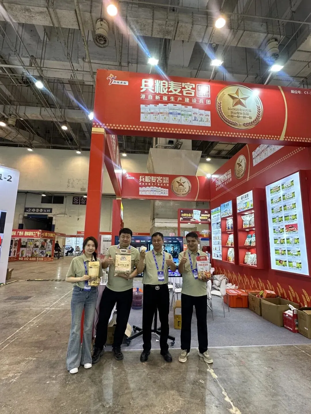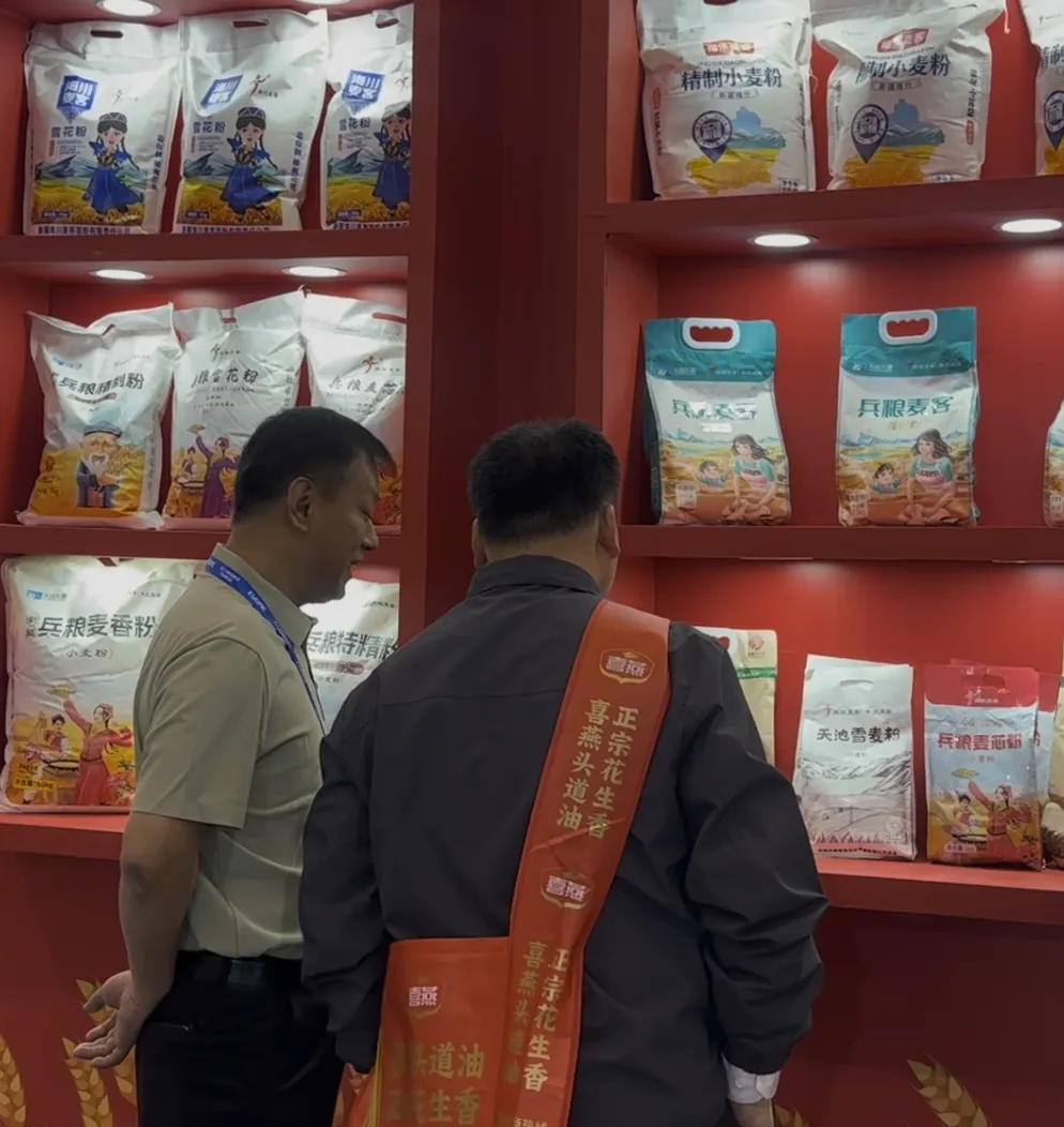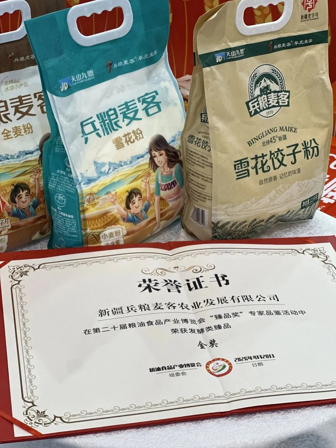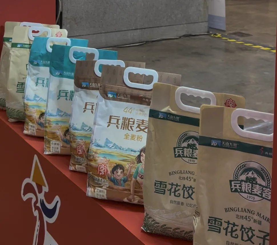 2026 年 4 月 18 日 —21 日,第二十届粮油食品产业博览会在青岛国际会展中心盛大举行。兵粮麦客受邀参展,以新疆兵团匠心面业代表惊艳亮相,携新疆特色优质面粉全系列产品精彩展出,全面展现兵粮麦客的深厚底蕴与卓越品质实力。本届展会,兵粮麦客立足北纬 44°世界黄金麦区、天山冰川雪水灌溉的天然优势,依托兵团六十余年制粉积淀与现代化智能制造实力,携多款核心优质面粉产品矩阵震撼亮相。全方位彰显新疆面粉产业得天独厚的自然禀赋、严苛匠心的制造实力与蓬勃向上的创新活力。在本届粮博会专家品鉴环节中,经过行业资深专家层层评审、严格品鉴、综合打分,兵粮麦客面粉凭借: