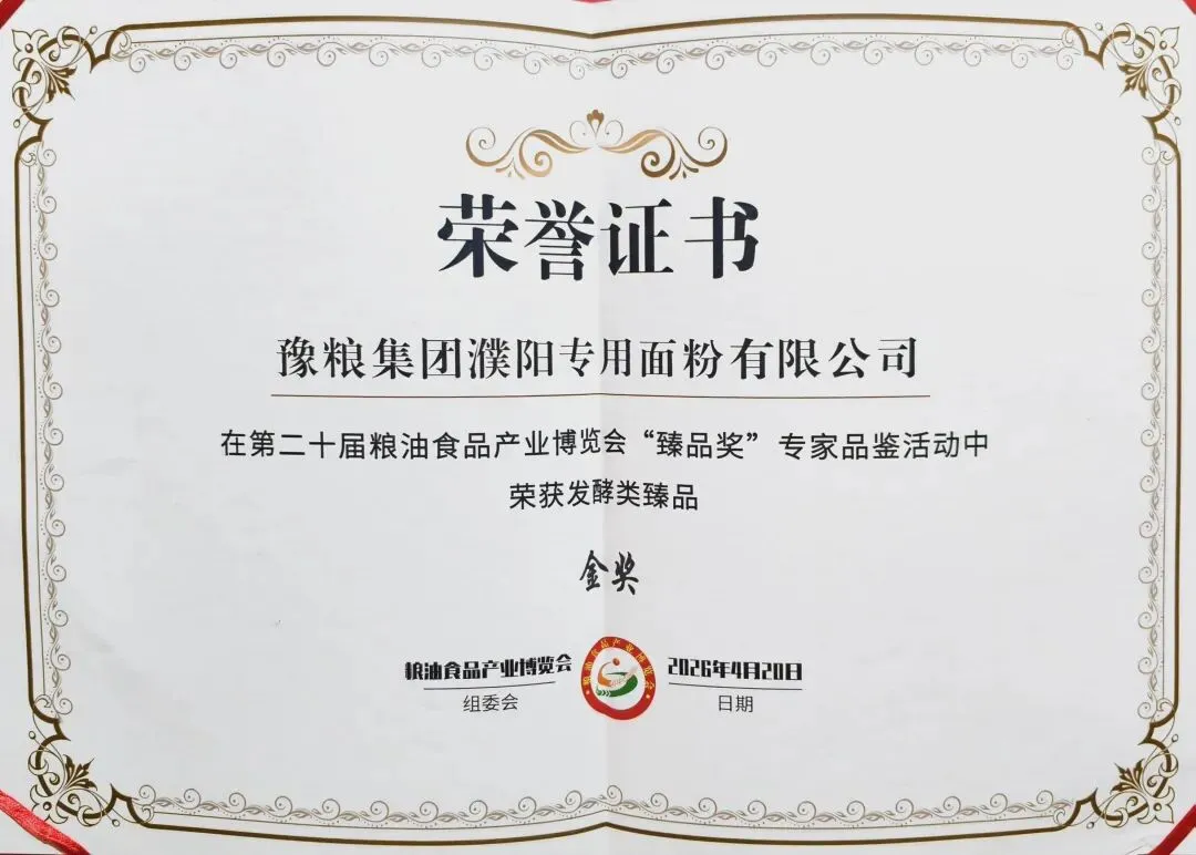 经过专家团严格评审,裕厨面粉凭借卓越过硬品质,荣获本届粮博会“臻品奖”发酵类臻品金奖。