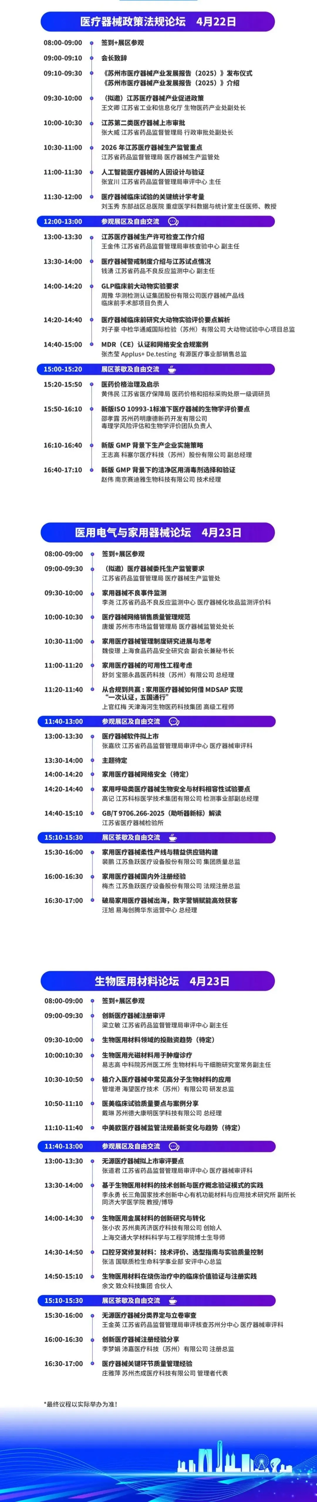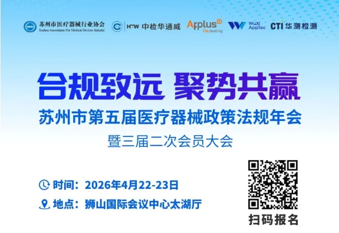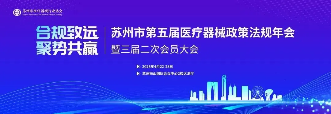 苏州市医疗器械行业协会定于 2026 年 4 月 22—23 日举办第五届医疗器械政策法规年会暨三届二次会员大会。