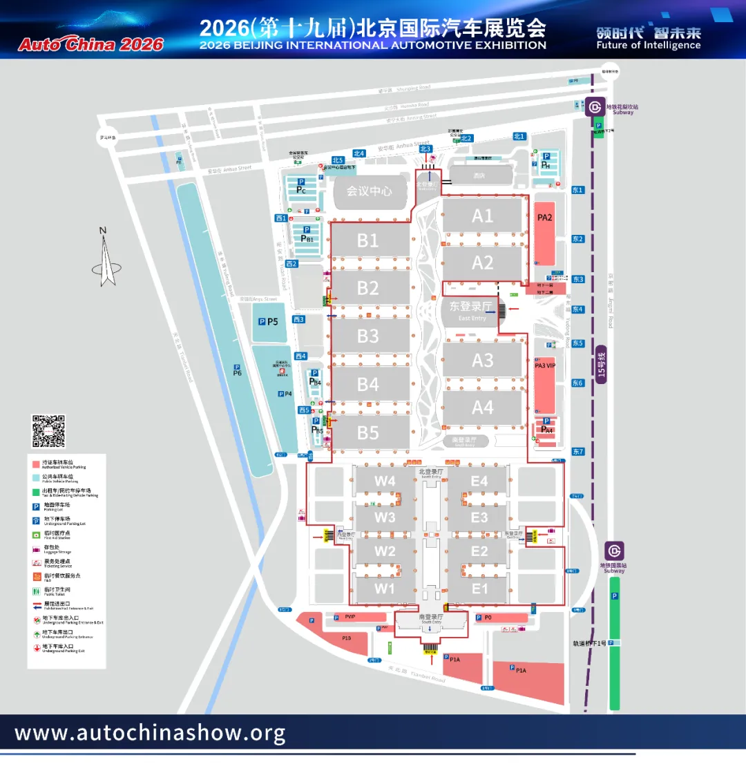 After parking at P4, P5, PB1, PB4, PB5, PC, or PH, follow the signs and walk to the West Entrance of CIEC Shunyi or the West Entrance of CIECC to enter.