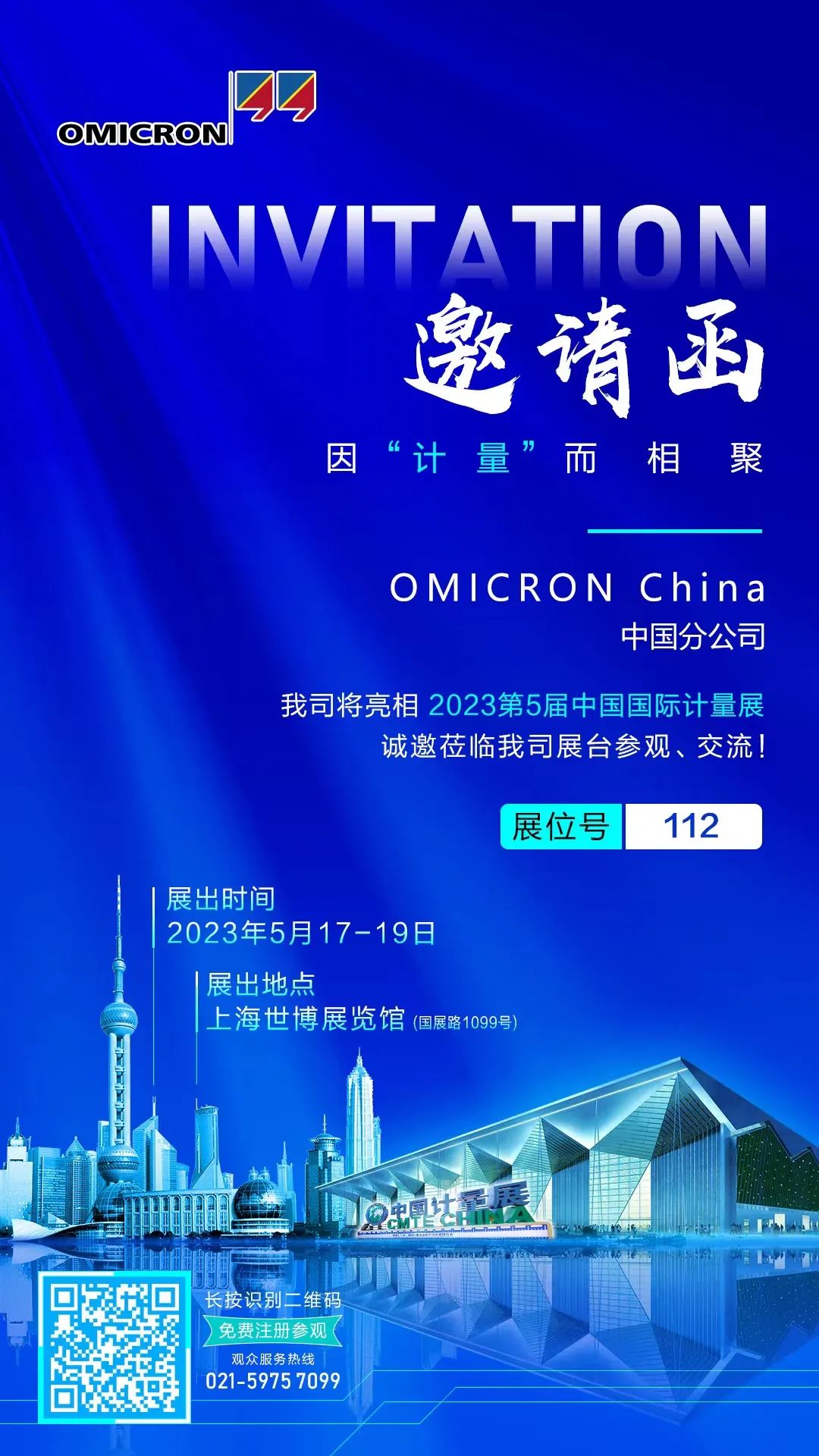 OMICRON中国将于本周(2023年5月17日-19日)参加第5届中国国际计量展,我们的展位号是112,期待您的莅临参观和交流!