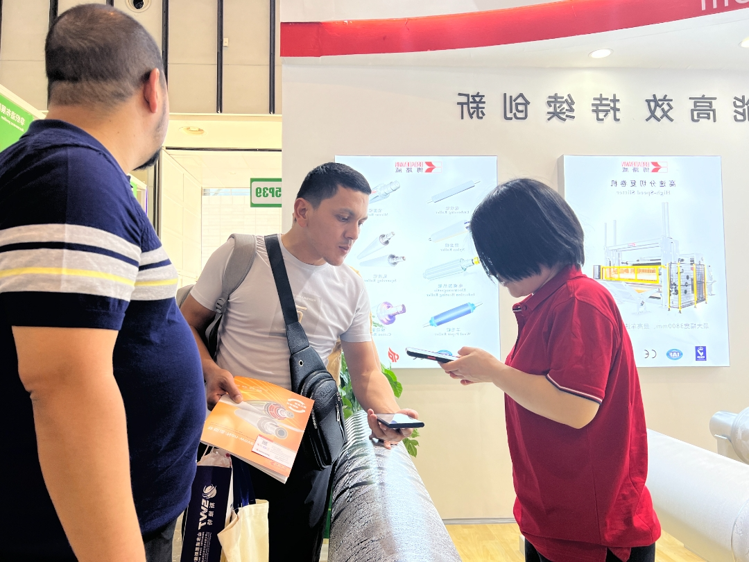 开展首日,博路威展位现场人气爆棚,博路威的新老朋友齐聚展台,分享创新技术、交流行业经验、探讨产业发展,博路威的湿法水刺线压花机设备、各类花辊得到客户的高度认可。