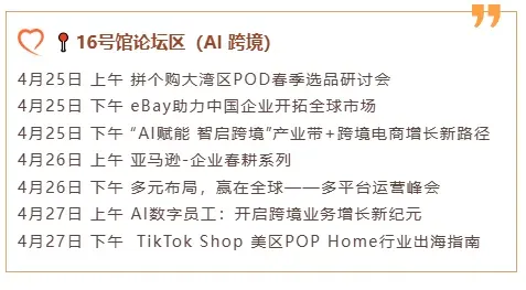 16号馆:AI跨境论坛区 + POD定制体验区 + AI爆品展示区