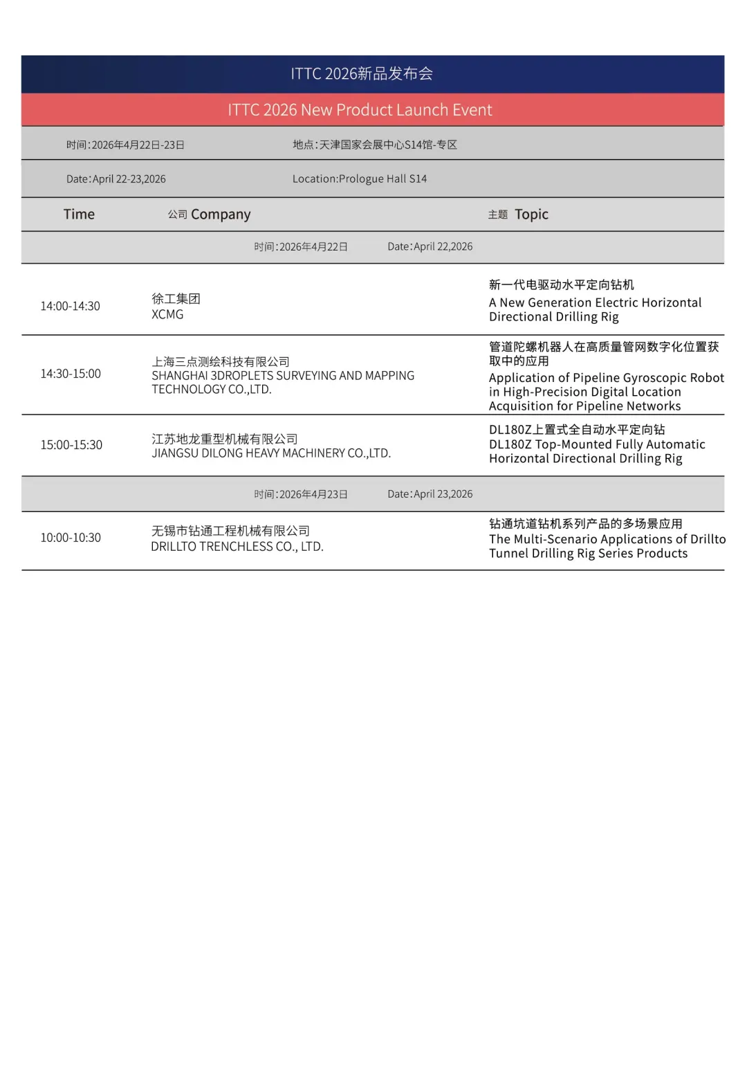 ITTC2026展会不仅是一个学习和交流的平台,更是一个发现创新、探索未来的机会。我们诚邀您莅临展会,与行业领导者们汇聚一堂,交流专业知识,探索新的商机,推动非开挖技术的创新发展。