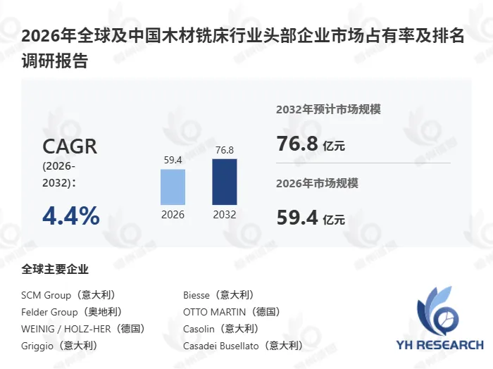 以下内容来自恒州诚思YHResearch出版的《2026年全球及中国木材铣床行业头部企业市场占有率及排名调研报告》,同时提供英文,日文,韩文等不同语种版本报告。