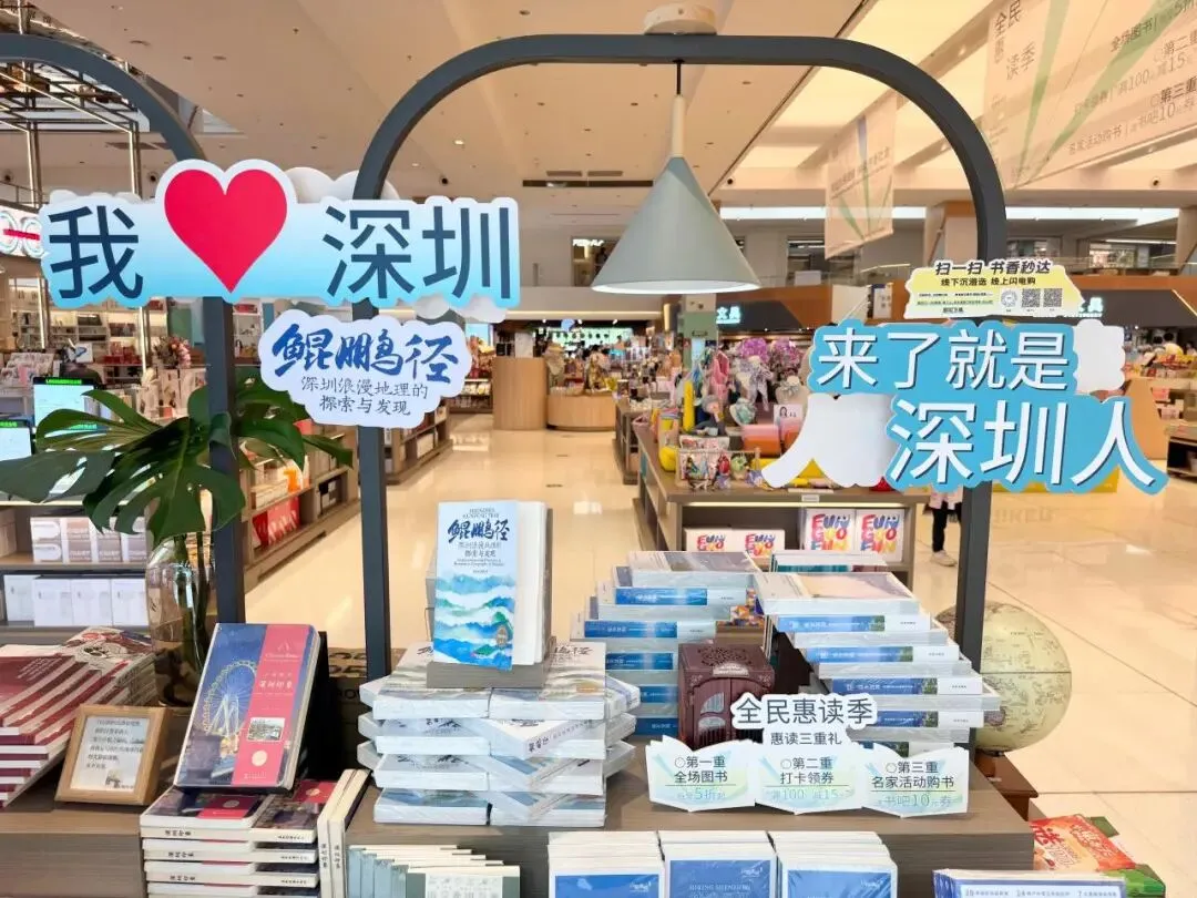 拍下这一刻,分享发到你的社交平台,即可联系书城工作人领取“满100元减15元”全民惠读券,可叠加全场图书折扣低至5折起使用。这一张照片,是你与深圳的专属记忆,也是你在这座城市留下的阅读印记。