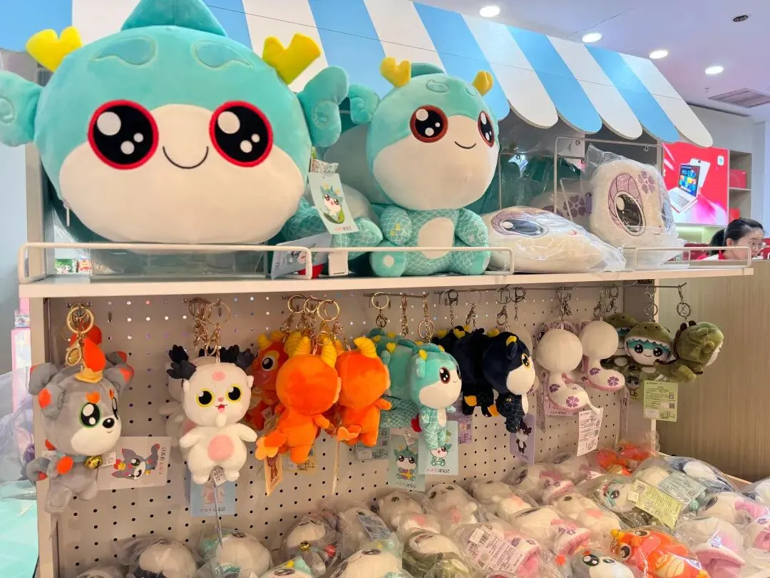 顶呱呱公仔从24cm到45cm,抱在怀里刚刚好。毛绒挂饰恐龙变装款、乌墨墨款、亮晶晶款……每一个都想带回家。还有顶呱呱头型抱枕、亮晶晶毛绒挎包,实用又可爱。
