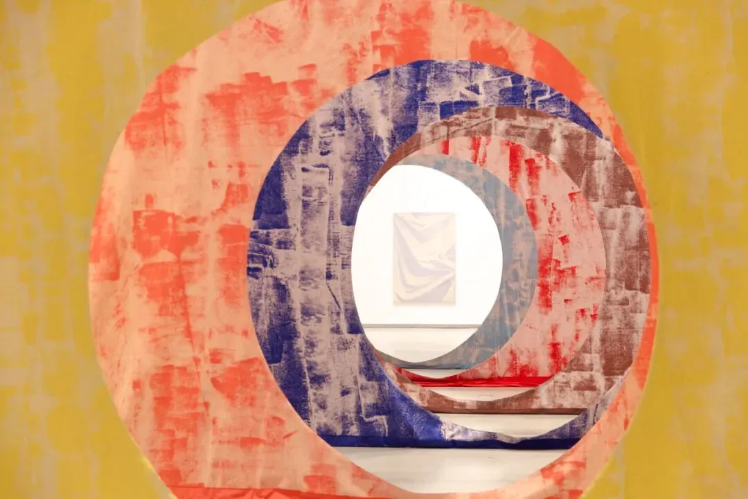 当色轮映射出关乎生命的哲思,观众可以通过艺术家手工染色的巨大包裹式幕帘,浸入这处悬浮又真实、私密又共存的装置间,观看和感受近乎博尔赫斯《环形废墟》(The Circular Ruins)所指向的欧洲古典浪漫主义的象征场域,并重思“废墟”的精神定义:或是转瞬即逝的时间之流,抑或是记忆中不可言状的悲伤之感。在色彩的世界里,我们的存在仿若只是回声、遗忘和虚空。
