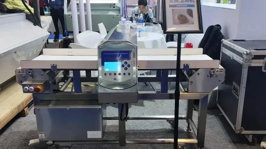 废塑在破碎、切粒等加工环节易混入金属异物,太易展位的标准型金属检测机,可应用于废塑料破碎前的金属检测;针对塑料颗粒,太易检测也可以提供多型号的重力下落式金属检测机供选择。