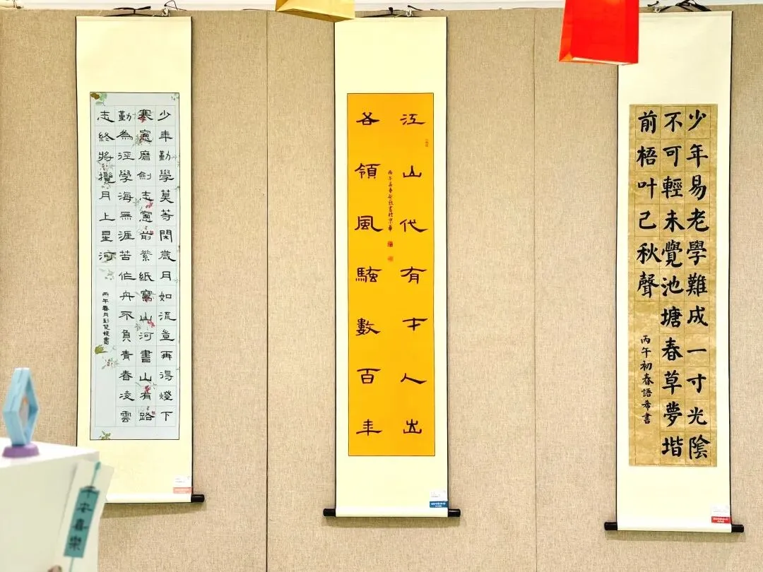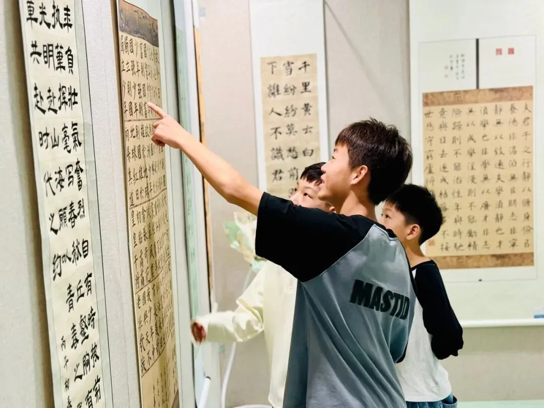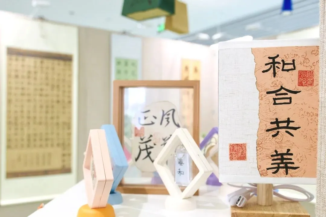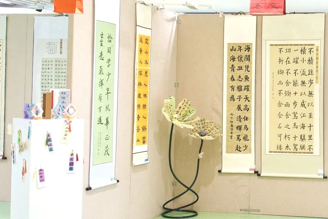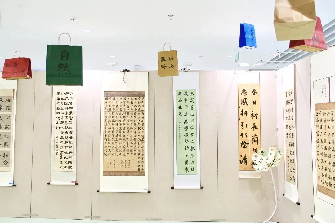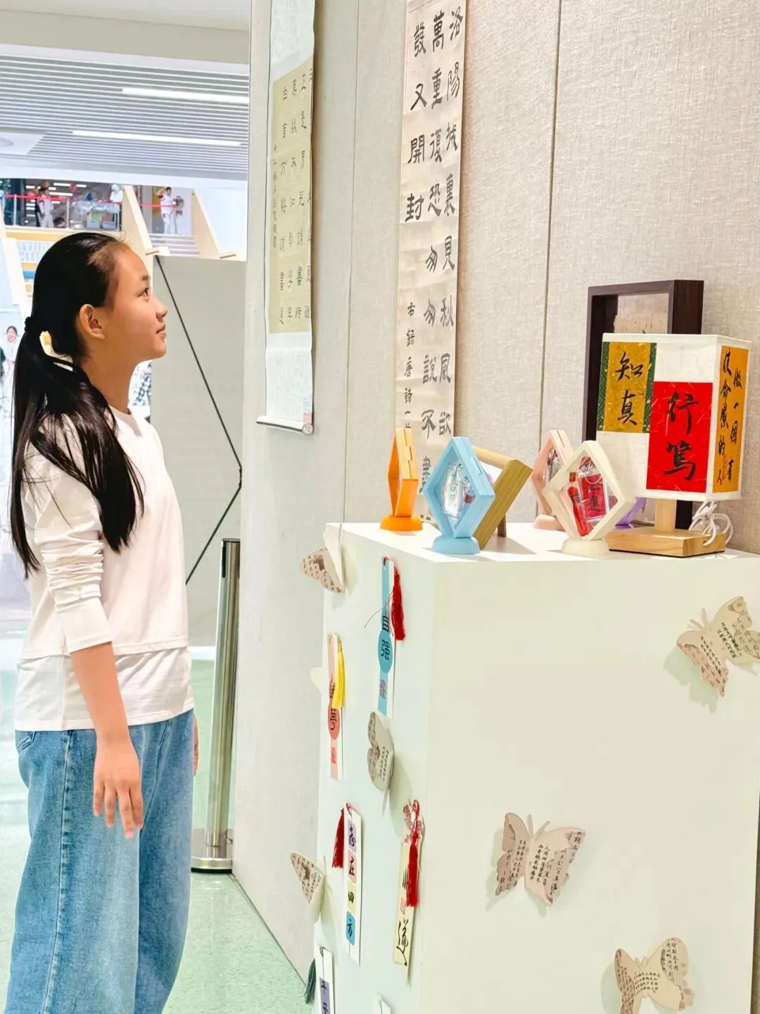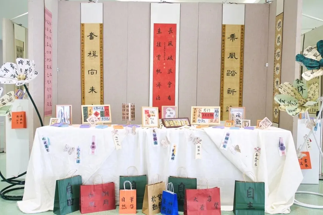 作品是展览的灵魂,更是情感的载体。传统书法区,楷书端庄、行书洒脱、隶书古朴,孩子们凝神落笔,将对母校的眷恋、对未来的期许藏进一撇一捺;文创区,书签、钥匙扣、墨韵台灯、摆件兼具美感与实用,每一件都凝聚着巧思;环保创意区,废旧练习纸被裁成花瓣拼接成花艺,保留的字迹见证着成长轨迹——“素笺笔墨,因热爱而滚烫,因情谊绵长而熠熠生辉。