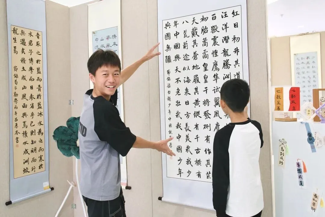 这场书法展,是5名学子献给毕业季的珍贵礼物。他们以墨为媒,既践行了对书法的热爱,也定格了同窗情谊。愿墨香常伴,少年们心怀热爱奔赴远方;愿每一位学生以笔为剑、以梦为马,在人生长卷上书写属于自己的精彩篇章!