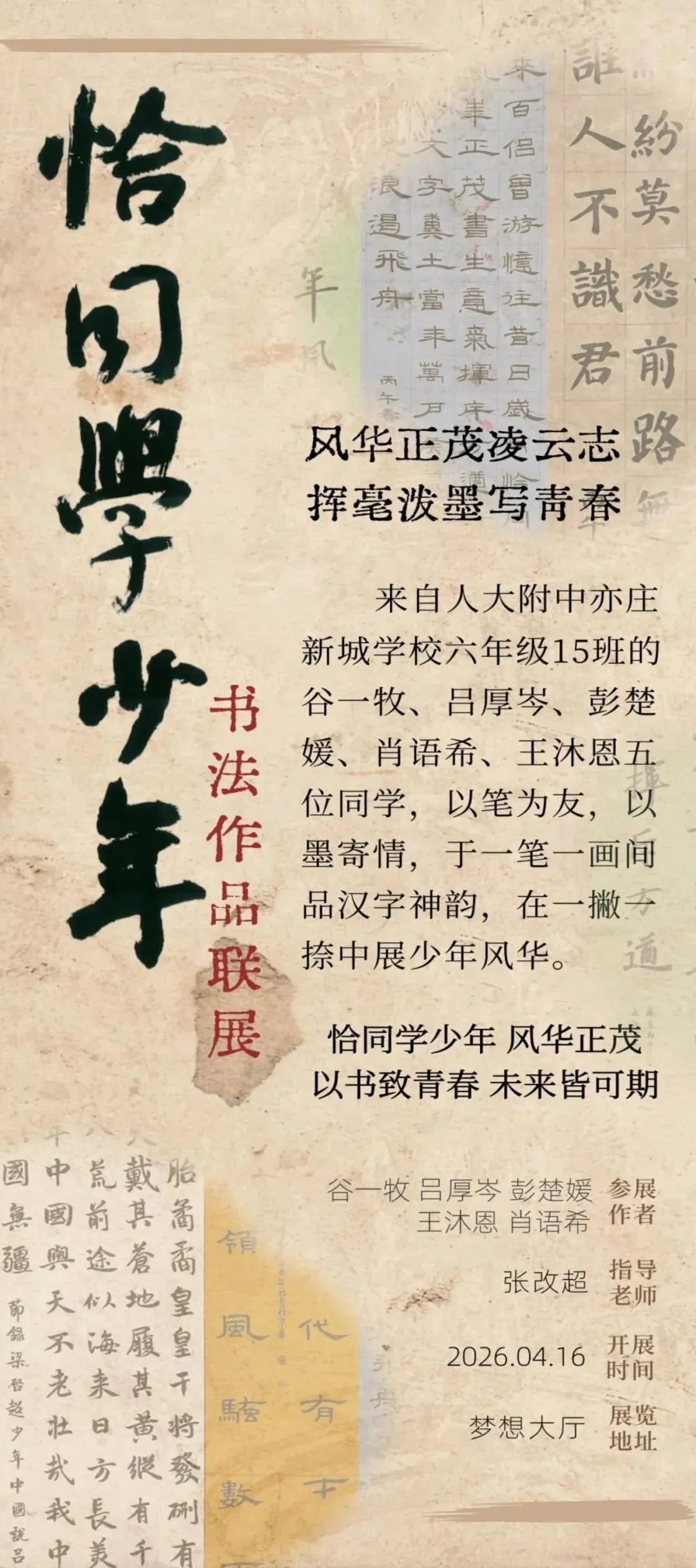 在校园的一角,一段安静的时光被具象化了——五名学生的书法作品,正以“恰同学少年”为主题悄然展出。这些笔墨,并非一蹴而就的成果,而是源于日复一日与字帖的“对话”、与自我的“相处”。当校园的阅读季倡导在书页中深潜、在文化中浸润时,六年级15班5名学子,以热爱为笔、情谊为墨,联袂呈现“恰同学少年”主题书法展,他们选择在墨香中践行同一种“深度”:于一横一竖间读懂规矩,于一撇一捺中体会收放。这场小而美的作品展,不仅展现了笔墨的功力,更呈现了一种可见的成长——那是耐心、是专注、是少年心性的悄然沉淀。