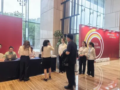 在会务组,铂瑞酒店内的志愿者们同样各司其职:签到台的同学以热情的态度协助展会签到工作;嘉宾接待岗的同学灵活应对各项需求,为参会嘉宾提供周到的接待服务,展现了学院学子的良好风貌。