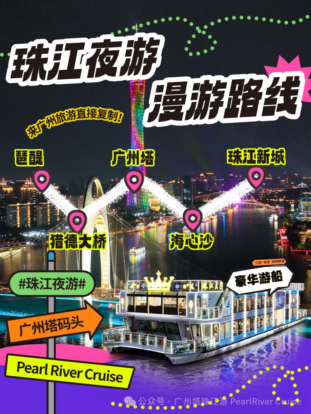 夜游珠江,一江两岸灯火璀璨,尽览广州地标与都市风情