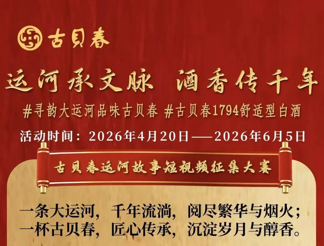 近日,古贝春集团官宣:“运河承文脉·酒香传千年”为主题的古贝春运河故事短视频征集大赛启动, 可于4月20日——6月5日在抖音平台参与。要求视频内容要紧紧围绕古贝春与运河文化两大元素展开的,视频须为本人原创作品,无任何版权纠纷及侵权风险。活动结束后,古贝春集团将公布获奖名单并统一发放奖品。