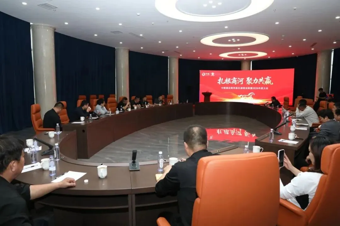 近日,今朝酒业商河县白酒商业联盟2026年度大会召开。今朝酒业总经理刘鑫、营销总经理李清峰、事业二部负责人张涛及联盟体全体成员共同出席本次活动。会上,刘鑫总经理对会员们表示感谢并回顾2025年度工作中的不足,会议最后,联盟会员内部就章程进行了讨论修正并完成了年度续签工作,今朝酒业将携手全体会员共创共赢新篇章。