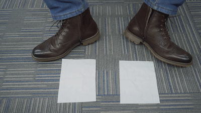 再让刚刚那位小伙伴把脚印在纸上看看,效果太明显了!(左为撒了蛇粉的右脚)