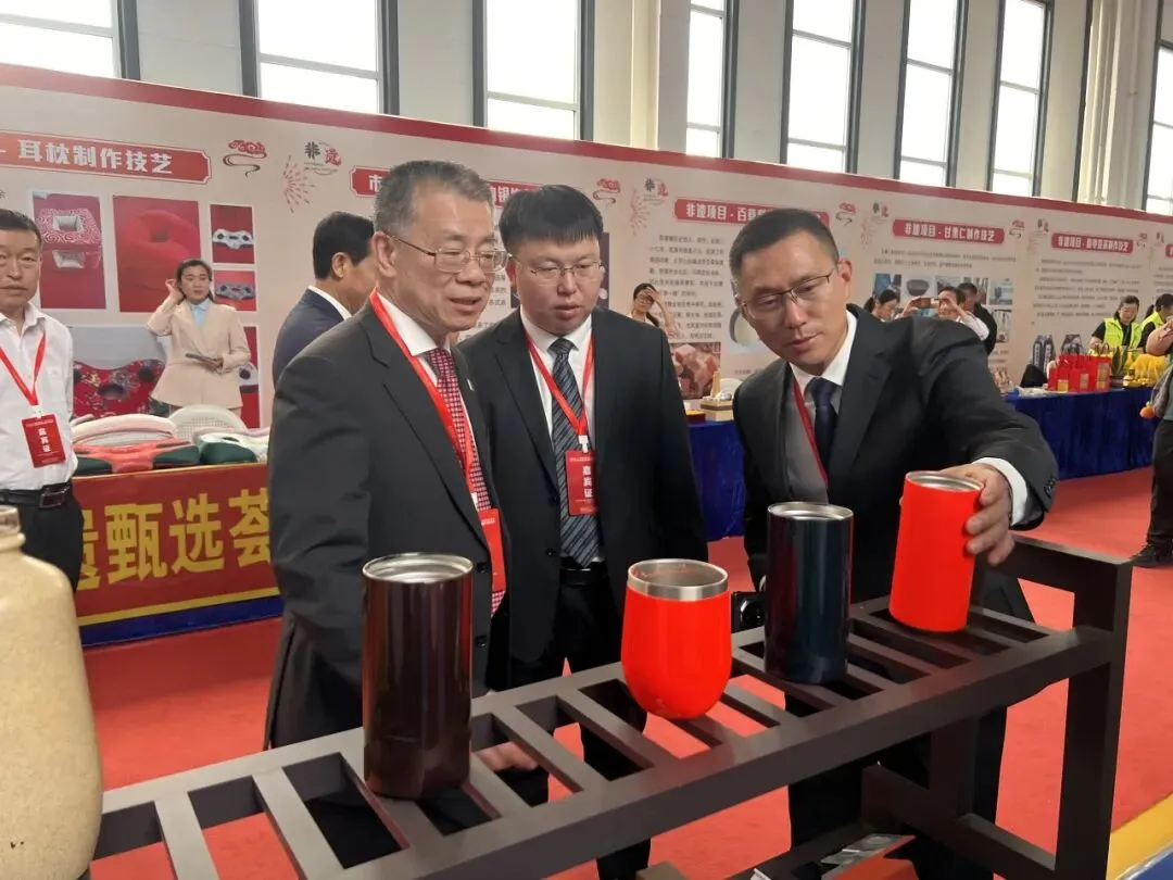 图 | 中国建筑材料流通协会会长秦占学(中)寺头镇党委书记扈涛(右)临朐县护栏行业协会会长时元民(左)