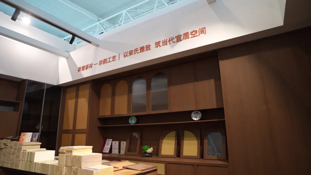 本次展会,秋意板材携全矩阵优质产品、创新工艺成果及高端定制系列重磅亮相,从环保基材到匠心工艺,从东方美学到现代风尚,全方位展现品牌硬实力与设计巧思,展位始终人流如织、洽谈不断,成为展会中备受瞩目的焦点,人气与口碑双双登顶。