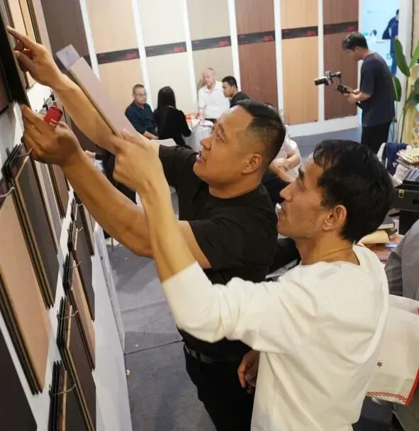 展会期间,秋意板材展位始终宾客盈门,来自全国各地的行业同仁、经销商伙伴络绎不绝,驻足观摩产品、交流工艺技术、探讨合作机遇。专业的团队服务、过硬的产品品质、出众的美学设计,让秋意板材收获了海量认可与合作意向,每一份关注与信赖,都是品牌前行的不竭动力。